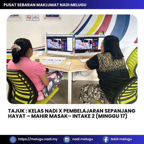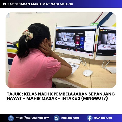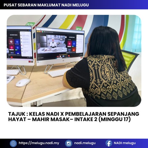 Dua orang peserta dari Pusat Sebaran Maklumat Nasional (NADI) Melugu telah menyertai sesi Kelas NADI Mahir iaitu Mahir Masak yang diadakan menggunakan platform Google Meet.