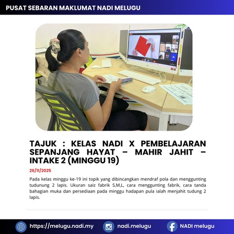 Kelas Nadi X Pembelajaran Sepanjang Hayat – Mahir Jahit – Intake 2 (Minggu 19)