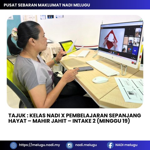 Seorang orang peserta dari Pusat Sebaran Maklumat Nasional (NADI) Melugu telah menyertai sesi Kelas NADI Mahir iaitu Mahir Jahit yang diadakan menggunakan platform Google Meet.