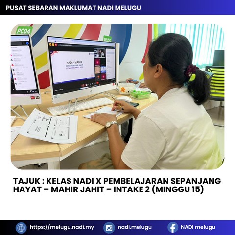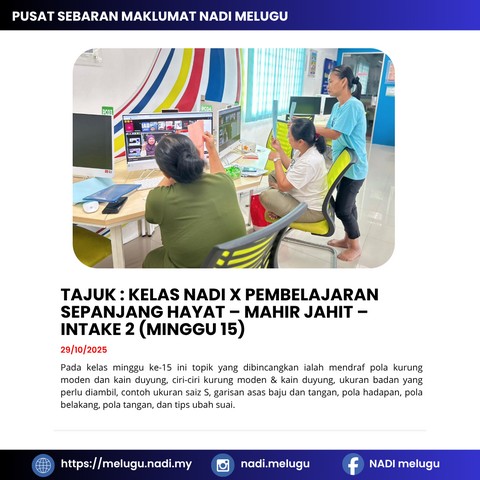 30 Oktober 2025 | Aktiviti TerkiniPada 29 Oktober 2025, tiga orang peserta dari Pusat Sebaran Maklumat Nasional (NADI) Melugu telah menyertai sesi Kelas NADI Mahir iaitu Mahir Jahit yang diadakan menggunakan platform Google Meet.