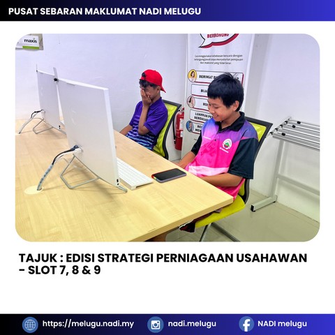 Satu sesi webinar NADI X Keusahawanan bertajuk Edisi Strategi Perniagaan Usahawan - Slot 7, 8 & 9 telah diadakan di Pusat Sebaran Maklumat Nasional (NADI) Melugu. Sesi ini memberi tumpuan kepada strategi perniagaan, penggunaan teknologi serta pembinaan jenama usahawan.