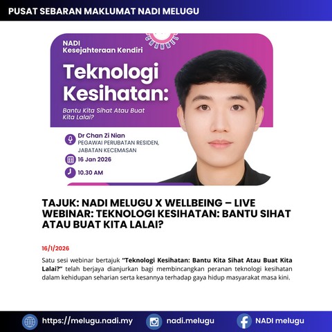 Nadi Melugu X Wellbeing – Live Webinar: Teknologi Kesihatan: Bantu Sihat Atau Buat Kita Lalai?