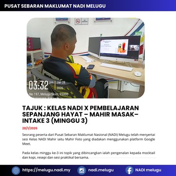 Seorang peserta dari Pusat Sebaran Maklumat Nasional (NADI) Melugu telah menyertai sesi Kelas NADI Mahir iaitu Mahir Foto yang diadakan menggunakan platform Google Meet.